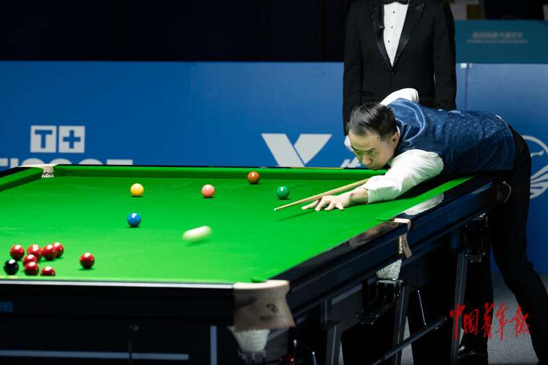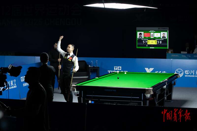 8月14日,成都世运会男子斯诺克决赛,中国选手肖国栋在决胜局通过出色的防守取得胜利。汪龙华/摄