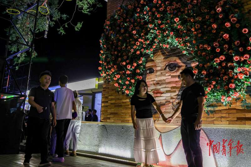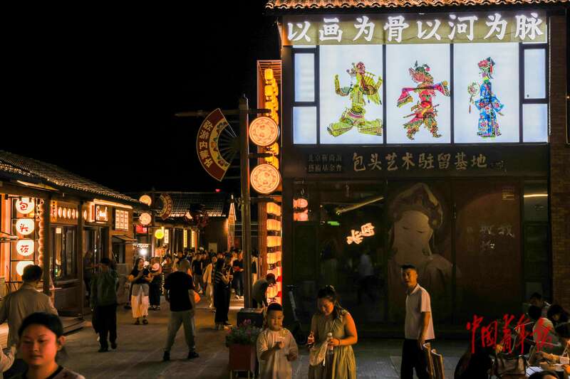 7月29日,内蒙古包头市“天下黄河第一村”,商业街区将黄河沿线的各地文化融入其中,随处可见高颜值打卡点。中青报·中青网见习记者 陈思阳/摄