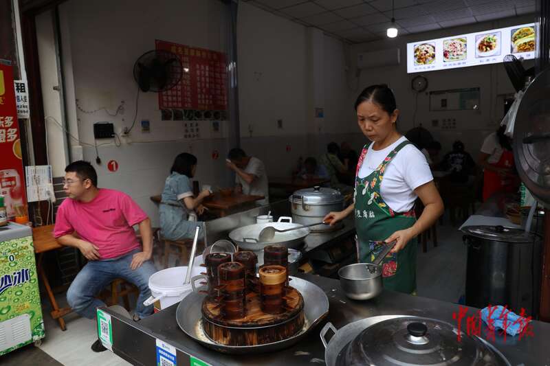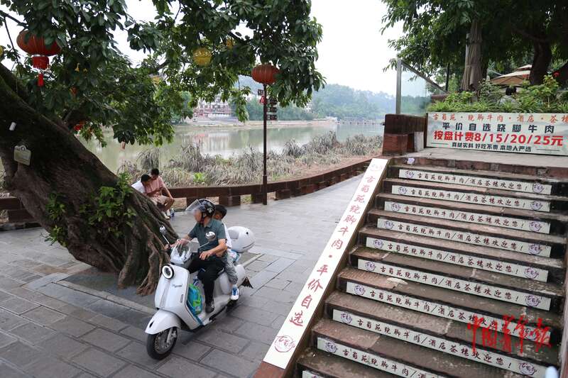 9月2日,四川省乐山市市中区苏稽古镇一家小吃店。苏稽是一个拥有1400多年历史的古镇,也是四川美食跷脚牛肉的发源地,其浓厚的烟火气息深受游客喜爱。中青报·中青网记者 王鑫昕 刘胤衡 摄影报道