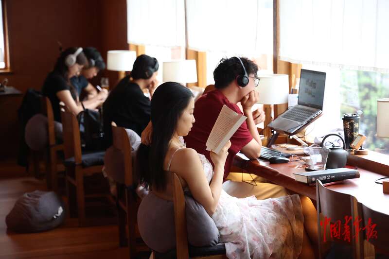 9月1日,四川成都高新区铁像寺水街一家书店,年轻人在自习空间看书。这是一家集服装、咖啡、餐食、书店、自习等功能于一体的“城市集合店”,是铁像寺水街打造的全天候、游憩式、慢生活复合型特色街区的组成部分。中青报·中青网记者 王鑫昕 刘胤衡 摄影报道