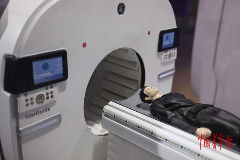 11月10日,上海国家会展中心,第八届中国国际进口博览会医疗器械及医疗保障展区,一款光子智速全环CZT-SPECT/CT设备的模型。中青报·中青网记者 孔斯琪/摄