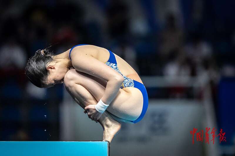 11月10日,广东广州,第十五届全国运动会女子单人10米跳台决赛前,陈芋汐在跳台练习。中青报·中青网记者 李隽辉/摄