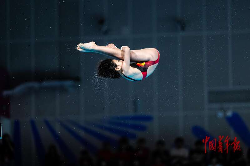 11月10日,广东广州,第十五届全国运动会女子单人10米跳台决赛,北京队选手张家齐在比赛中。中青报·中青网记者 李隽辉/摄