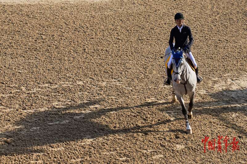11月17日,广东深圳,光明国际马术中心,十五运会马术场地障碍项目团体赛,浙江队徐昊与赛马“Eyes blue de la sina”在比赛中。中青报·中青网记者 田嘉硕/摄