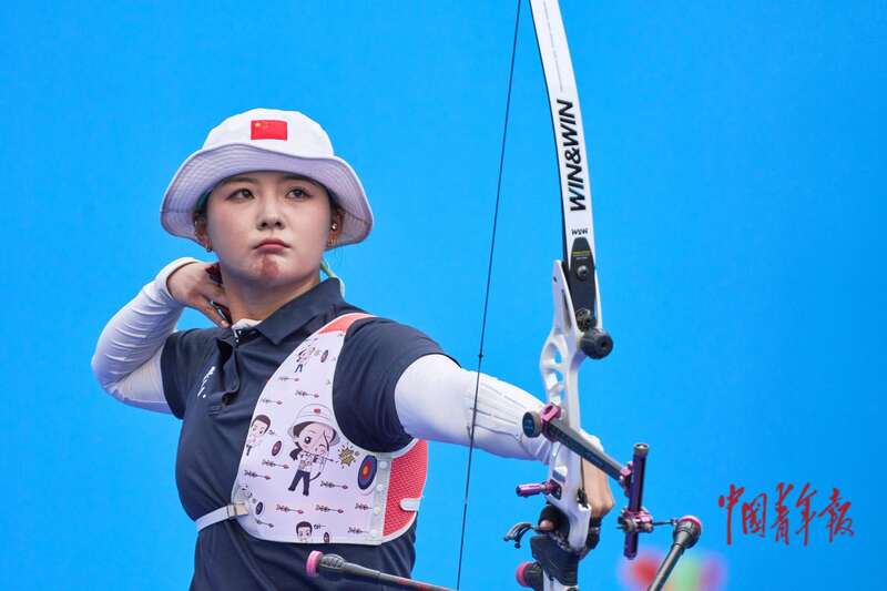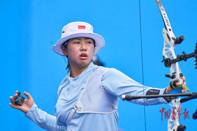 11月16日,广东深圳,深圳体育中心体育场,十五运会射箭女子反曲弓个人决赛铜牌决赛,上海队朱静怡在比赛中出现失误后惊讶万分。中青报·中青网记者 田嘉硕/摄