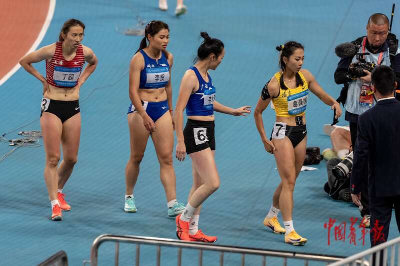 11月17日,广东广州,第十五届全国运动会田径女子100米复赛,福建队选手葛曼棋赛后离场时扶着右腿,随后她退出了当晚的女子百米决赛。中青报·中青网记者 李隽辉/摄