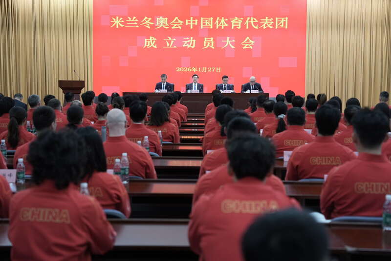 中国青年报客户端北京1月27日电(中青报·中青网记者慈鑫)今晨8时,第25届冬奥会中国体育代表团成立动员大会在北京举行。第25届冬奥会即将于2月6日在意大利米兰揭幕。据介绍,中国代表团共由286人组成,其中运动员126人(女子68人,男子58人),工作人员160人,将参加7个大项15个分项91个小项的比赛是我国冬奥会境外参赛项目最多、运动员规模最大的一届。