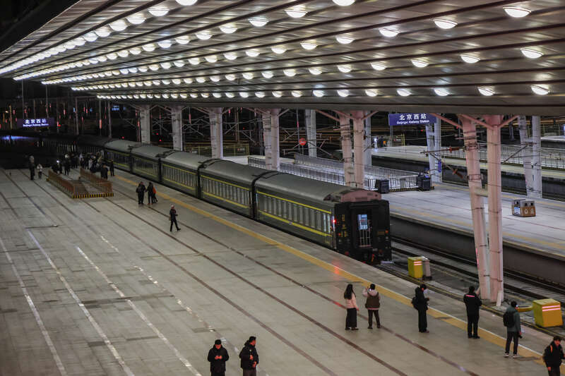 2月2日,北京西站,K4069次列车驶出车站。中青在线记者 陈思阳/摄