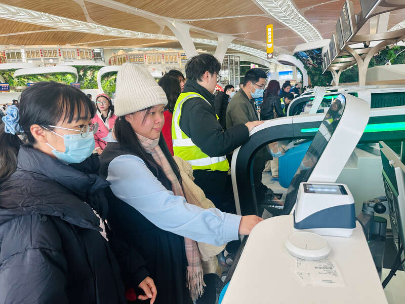 中青报·中青网记者看到新T3航站楼处处“智能”,旅客全流程自助系统,覆盖值机、托运、安检等全流程。今天是春运首日,没有出现排长队的情景。60台自助值机设备支持身份证、护照、港澳台通行证等多种证件自动识别办理,旅客拿着证件就能轻松办妥。