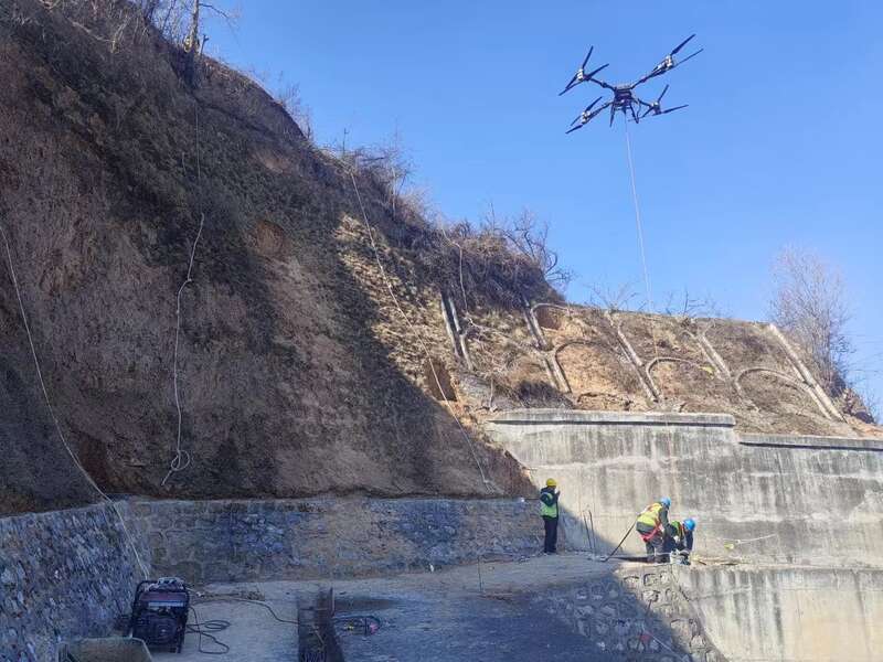 无人机送完最后一根立柱时,已经是下午4时。“混凝土来了!”张程泽顾不上歇气,拎着刚拌好的砼料,贴着坡面从隧道口挪了过来。党伟杰正低头预埋铆件,腰上的安全绳被轻轻绊了一下,他头也不抬——“来得正好,下拉线的基坑正好可以浇筑了。”