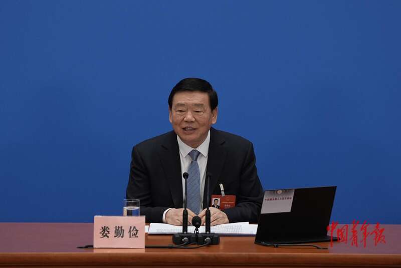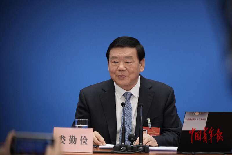 3月4日,北京,十四届全国人大四次会议在人民大会堂新闻发布厅举行新闻发布会,大会发言人娄勤俭就大会议程和人大工作相关问题回答中外记者提问。中青报·中青网记者 李隽辉/摄