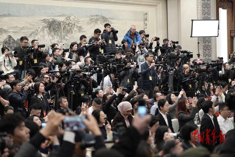 3月4日,北京,十四届全国人大四次会议在人民大会堂新闻发布厅举行新闻发布会,现场众多中外媒体记者关注。中青报·中青网记者 李隽辉/摄