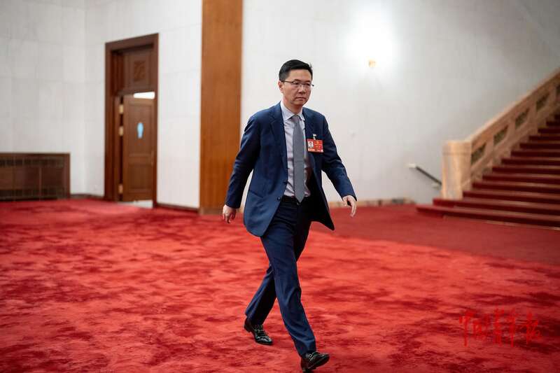 3月9日,北京,十四届全国人大四次会议第二次全体会议,全国人大代表、北京大学博雅特聘教授田轩进入会场。他今年建议延长A股交易时间和探索“四天半工作制”引起热议。中青报·中青网记者 李隽辉/摄