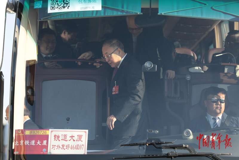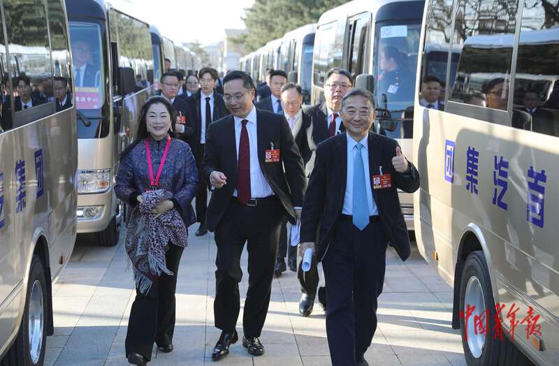 3月11日上午,北京人民大会堂外,全国政协十四届四次会议闭幕会开始前,委员们下车走向会场。中青报·中青网记者 陈剑/摄