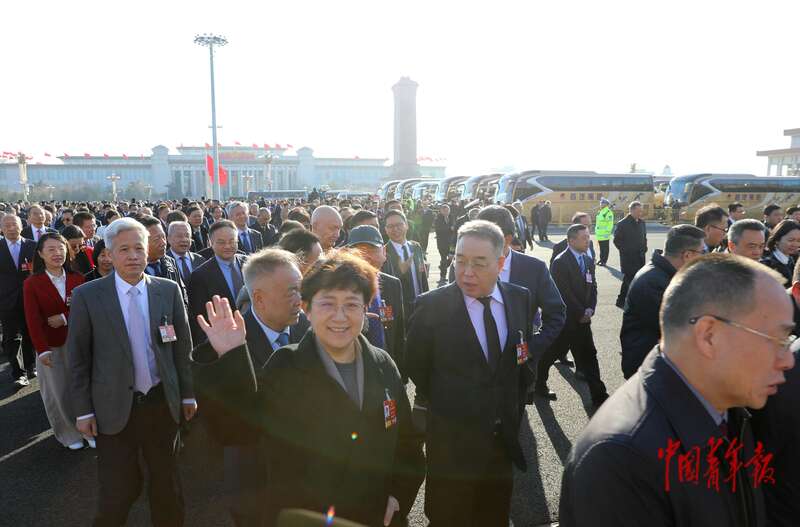3月11日上午,北京人民大会堂外,全国政协十四届四次会议闭幕会开始前,委员们走向会场。中青报·中青网记者 陈剑/摄