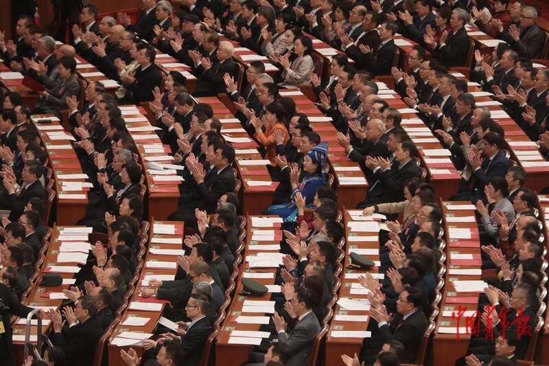 3月11日上午,北京人民大会堂,全国政协十四届四次会议闭幕会现场,委员们在鼓掌。中青报·中青网记者 陈剑/摄