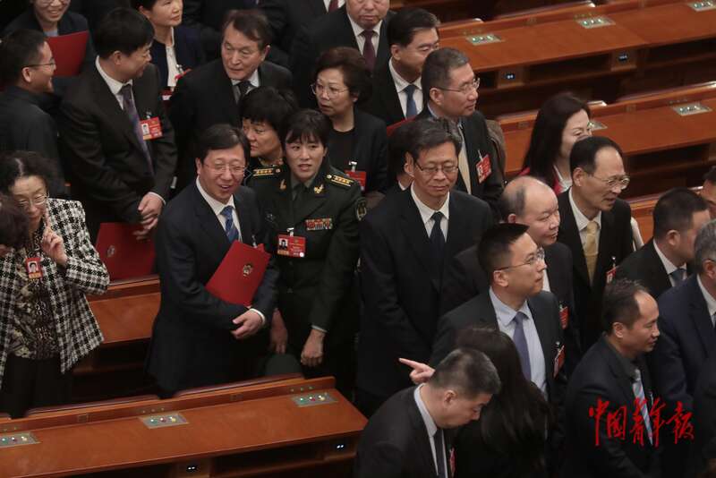 3月11日上午,北京人民大会堂,全国政协十四届四次会议闭幕会开始前,委员们进入会场准备参会。中青报·中青网记者 陈剑/摄