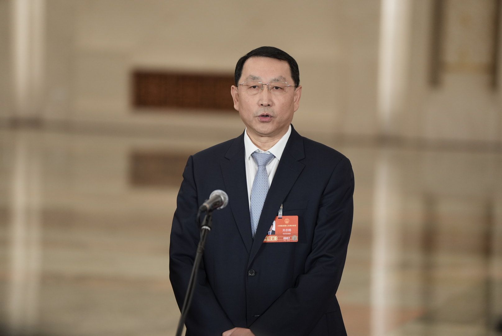 3月12日,北京,人民大会堂,十四届全国人大四次会议第三场“部长通道”集中采访活动,自然资源部部长关志鸥接受记者采访。(中青报·中青网记者 李隽辉/摄)
