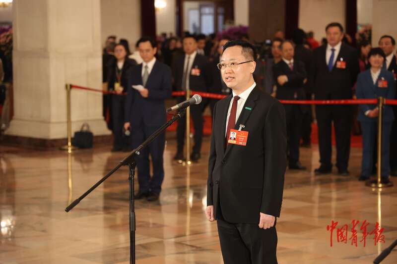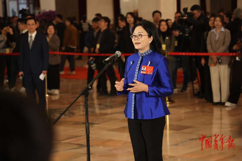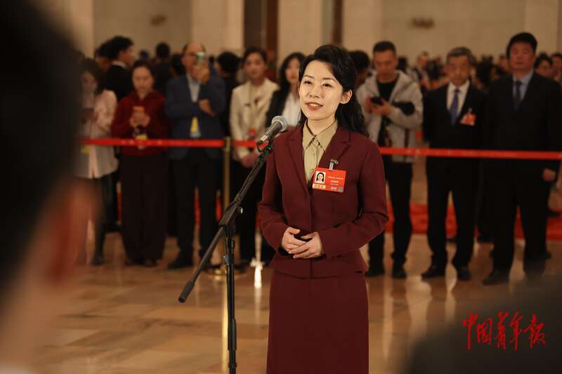 3月12日,北京人民大会堂,十四届全国人大四次会议第三场“代表通道”集中采访活动中,全国人大代表、博发康安控股集团有限公司董事长陆晓琳接受记者采访。中青报·中青网记者 王鑫昕/摄