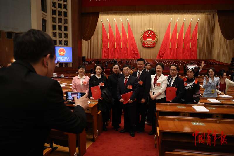 3月12日,北京人民大会堂,十四届全国人大四次会议闭幕会后,代表们在会场合影留念。中青报·中青网记者 王鑫昕/摄