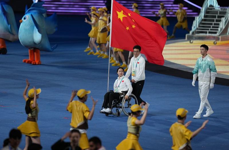 黄晓连、孙刚任旗手 中国亚残运代表团入场迎全场欢呼