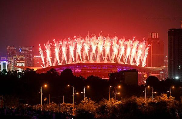 扑面而来的青春活力让广西体育中心在夜幕中闪闪发亮