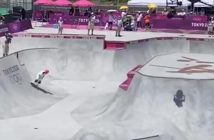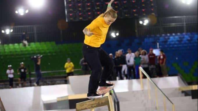 中国选手张鑫今天亮相奥运会历史上首个滑板女子碗池项目的赛场