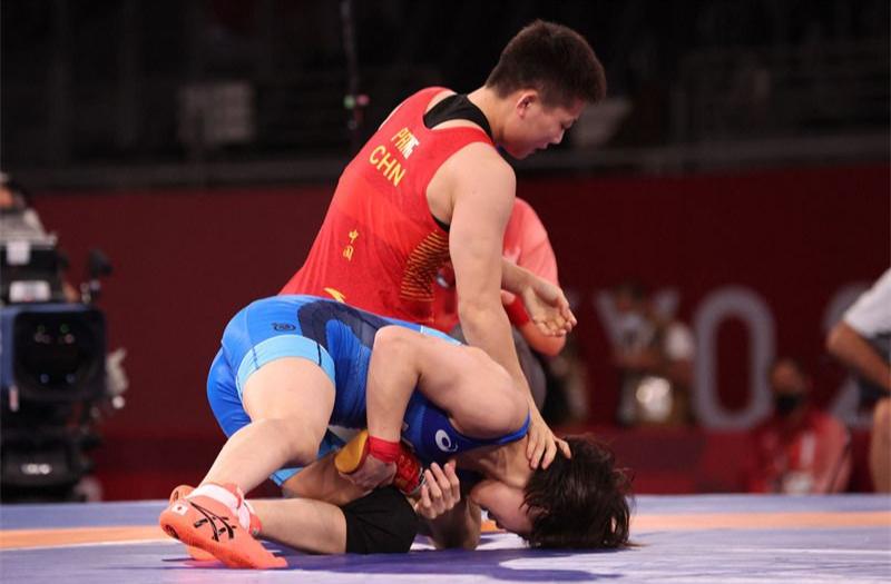 庞倩玉以4:5遗憾落败,获得这枚摔跤银牌。