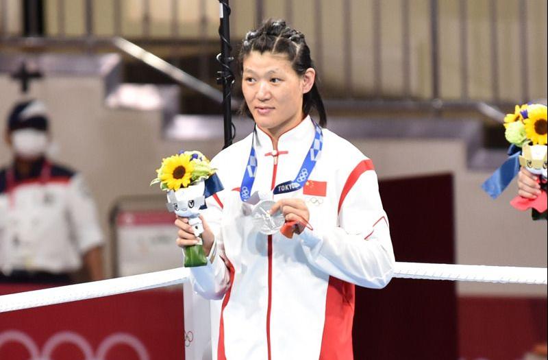 中国33岁老将谷红夺得女子拳击64-69公斤级银牌。