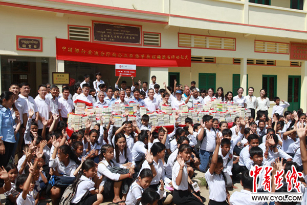 中青在线金边10月13日电(中国青年报·中青在线驻柬埔寨记者 蒋天)10月12日,中国银行金边分行奔赴柬埔寨实居省华侨公立学校,为该校师生送来两千多册图书,受到了当地柬华理事会及在校师生的热烈欢迎。中国银行金边分行行长陈长江、实居省柬华理事会会长吴俊茂、实居省柬华理事会理事、中国银行金边分行部分员工及学校部分师生出席了本次捐赠活动。