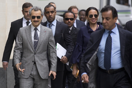 当地时间11月4日晚,沙特国王萨勒曼发布国王令,成立最高反腐委员会。数小时内,该委员会以涉嫌腐败和洗钱等犯罪行为为由,拘捕了11位王子、4名现任部长以及数十名前部长。被誉为阿拉伯的“沃伦·巴菲特”、有“中东股神”称号的瓦利德王子(即瓦利德·本·塔拉勒·阿勒沙特,前排左一)也在被逮捕人员当中。视觉中国供图(资料图片)