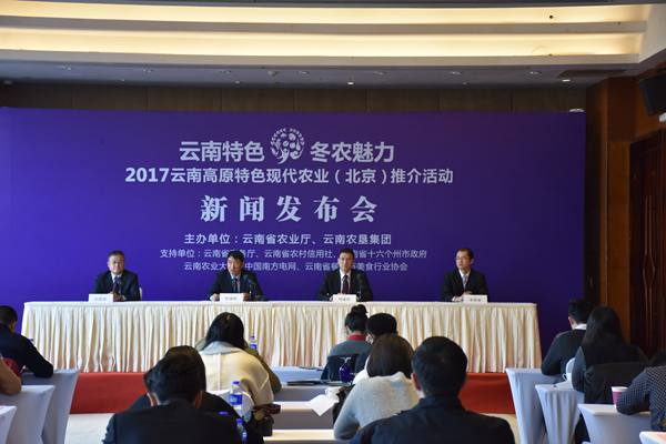 中青在线北京12月2日电(中国青年报·中青在线记者 齐征)“云南特色·冬农魅力”2017云南高原特色现代农业(北京)推介活动新闻发布会今天在北京举行。“云南特色·冬农魅力”2017云南高原特色现代农业(北京)推介活动将于12月7日,再次在北京全国农业展览馆1号馆拉开帷幕。据了解,本次推介活动为期4天,展区面积3000余平方米,届时将有170余家云南农业龙头企业参展。