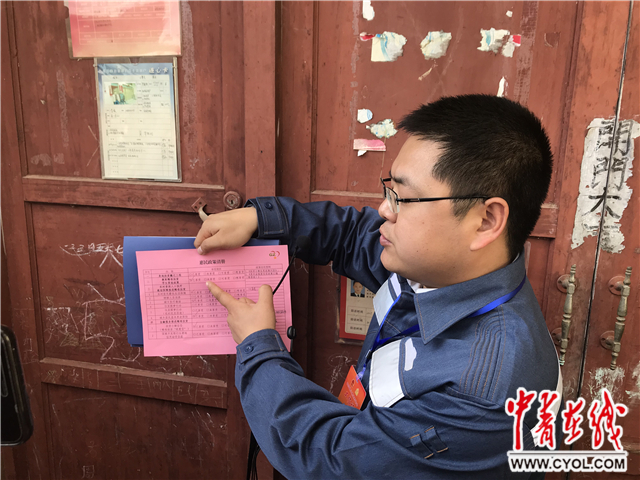 李敬正在介绍小寨关村对建档立卡贫困户开展“双心”服务工作。中国青年报·中青在线记者 董志成/摄