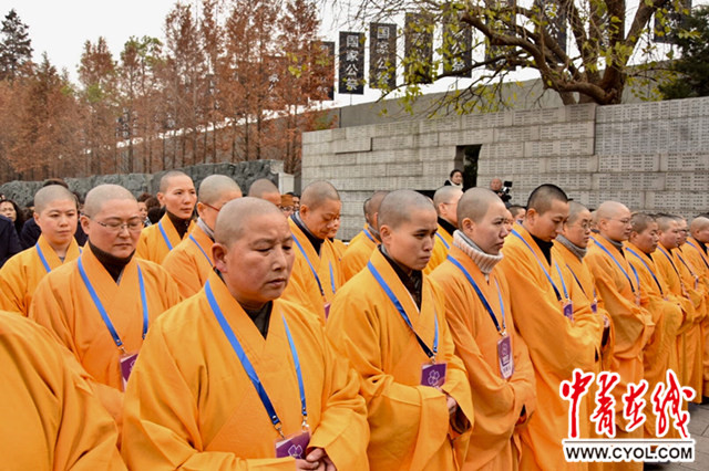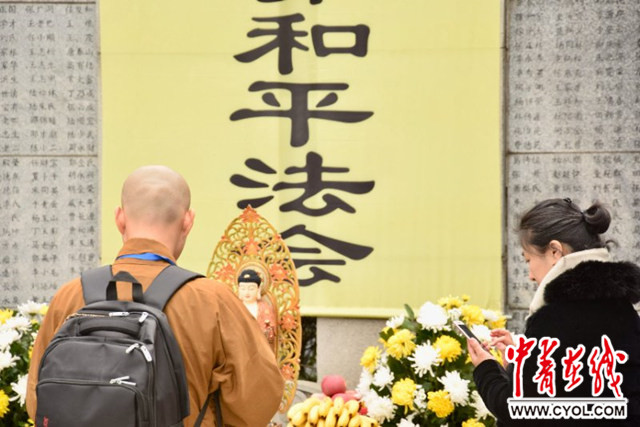 中青在线南京12月13日电(杨姝琨 程文静 中国青年报·中青在线记者 李润文)12月13日下午三点,2017年“世界和平法会”在侵华日军南京大屠杀遇难同胞纪念馆遇难者名单墙前举行。南京佛教协会代表、居士代表、南京大屠杀幸存者代表和日本两尊观音思考会访华代表以及其他各界和平友好人士参加本次世界和平法会。