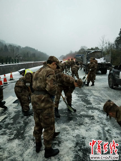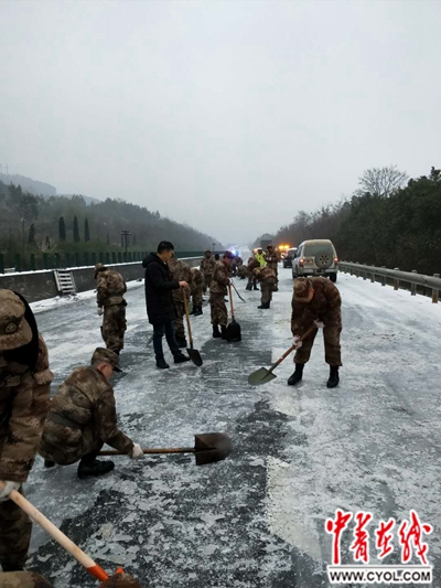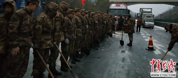 湖南省高速公路交警局郴州支队警力则全部上路,疏导交通,快速处理事故。进驻现场的民兵排列两行,采用撒盐和人工铲冰的方式,分段进行清雪疏路作业。周启雨说,在29日8时50分,京港澳高速公路往广州方面南下的路段被打通。