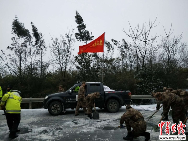 “29日2点01分接到市应急办和郴州军分区命令后,迅速召集了57名民兵应急队,出动16台车,其中6台指挥车,10台运输车。” 苏仙区委常委、人武部长周启雨说,他们应急队用1小时14分钟就赶到京澳港高速公路1818公里路段抢险。