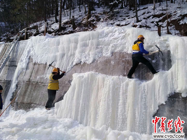 2月1日,是春运开始的第一天。中国铁路哈尔滨局集团有限公司佳木斯工务段南岔路桥车间伊春桥梁保养工区的青年职工们,冒着低温,顶着凛冽的寒风,开始了对汤林线170公里的山体积冰进行清除作业。