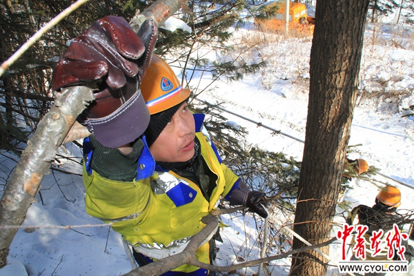 由于“冰瀑布”上的冰面较滑,桥隧工们要扎好安全带,戴好安全帽,才能开始除冰作业。