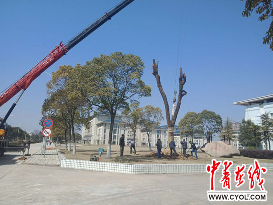 中青在线讯(李海云 中国青年报·中青在线记者 王磊 见习记者 王海涵)总价值3万多元的4棵樟树、1棵桂花树,近日在安庆师范大学龙山校区南门、西门门口和音乐(黄梅剧艺术)学院门口被分别移植起来。