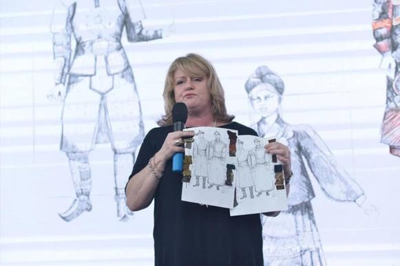 服装设计艾玛·瑞欧特向媒体展示戏服