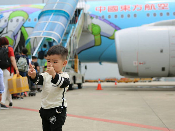 4月28日,中国东方航空与上海迪士尼度假区合作推出的“迪士尼▪皮克斯玩具总动员”主题彩绘机正式发布,同日,中国大陆地区第一架将机身外涂装、机舱内装饰以及机场主题场景完美融合的主题航班宣布启航。旅客从拿到纪念版登机牌开始,无论是位于航站楼出发层的玩具总动员主题元素的各类延展,还是机上丰富的娱乐体验,将全程沉浸于妙趣横生的玩具世界之中。