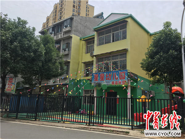 星星幼儿园位于江夏区栗庙新村C区。5月27日,记者看到,该园由一栋3层民居改造而成,大门紧闭。
