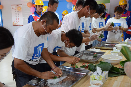 活动中,孩子们与父亲一起包粽子,并将艾叶、白芷、薄荷等数十味中草药装入丝布绣花香囊,系上五色彩绳、流苏,祝愿父亲端午安康。“我家孩子比较内向,平时我也很少跟他交流,收到这个香囊礼物,很感动,我会一直带着。”来自甘肃的涂料工符工说。