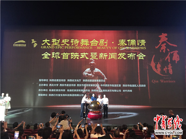 中青在线讯(杨昆 中国青年报·中青在线记者 孙海华)全球首部以“世界第八大奇迹”——兵马俑为原型,以秦朝风云历史为故事主线的史诗级大秀《秦俑情》首映盛典,于6月30日在陕西秦皇大剧院举行。这是兵马俑首次以非实体的表达方式,向世界传播秦文化魅力的大型史诗舞台剧作。