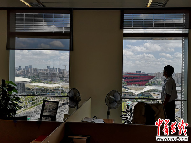 8月30日,上海宝武集团办公楼内一角。窗外是上海世博园中国馆。中国青年报·中青在线记者 陈剑/摄