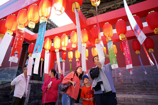 9月24日,市民和游客在北京民俗博物馆猜灯谜。当日是中秋假期第三天,北京民俗博物馆推出中秋民俗展示系列文化活动,吸引不少市民和游客前来赏民俗、过中秋。新华社记者鞠焕宗/摄