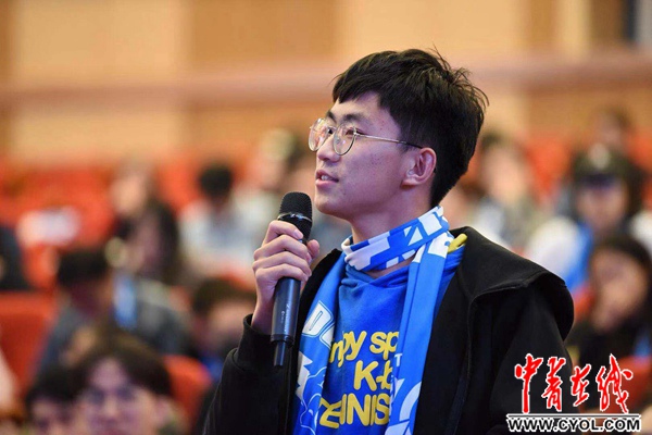 大学生体育记者团代表讲述自己与体育结缘的故事。中国青年报·中青在线记者 慈鑫/摄