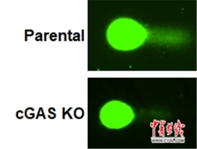 “cGAS会抑制DNA修复、促进肿瘤形成,这是我们在国际上首次发现cGAS所具有的一个全新功能。”戈宝学介绍,以往对cGAS的认识都集中在固有免疫上,即cGAS作为一个DNA受体,能够对外界病原微生物以及人体细胞质内自身DNA进行识别,并激活免疫应答,对它的生理过程研究也只是在细胞质内。cGAS这一促癌功能是首次被发现,因此这一成果将把cGAS的功能研究推向一个崭新的领域。