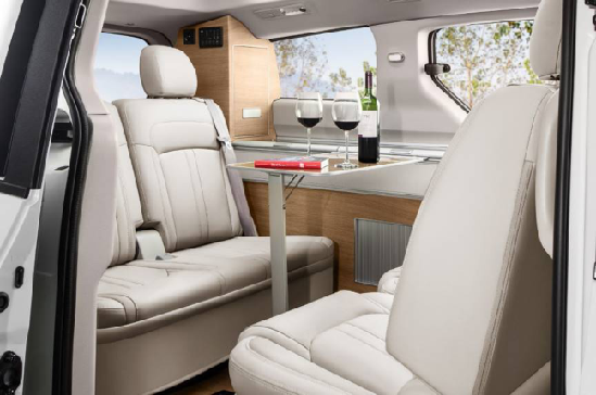上汽大通MPV升顶露营房车RG10内部空间。资料图片