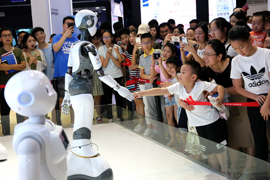 上海:世界人工智能大会落幕日,观众排长队感受5G和AI“黑科技”。视觉中国供图